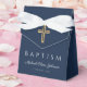 Elegant Navy Blue Cross Photo Boy Baptism Favour Box