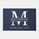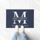 Elegant Navy Blue Custom Monogram Name Doormat - The perfect way to welcome guests to your home. Shown in navy blue, but other colours are available. Doormat features your Monogram and last name, and the year your home was established. This would make a wonderful wedding or housewarming gift. Part of a collection.