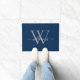 Elegant Navy Blue Custom Monogram Script Name Doormat