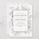 Elegant Navy Blue Floral Line Art Wedding Invitation