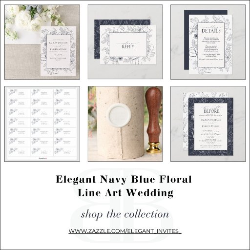 Elegant Navy Blue Floral Line Art WeddingDesigned by ANASTASIA SURRIDGE, Creative Director