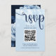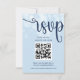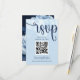 This RSVP card, part of the Elegant Navy Blue Floral Peony Wedding Suite, carries the suite's elegance with its pastel blue and white floral design set against a deep navy script. The style is clean and contemporary, with a nod to classic sophistication, making it perfect for a winter wedding or any season that appreciates timeless charm. A modern touch is added with the QR code for easy attendance confirmation, seamlessly blending tradition with modern convenience.