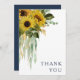 Elegant Navy Blue Floral Sunflower Wedding Thank You Card