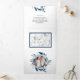 Elegant Navy Blue Floral Wreath Photo Wedding Tri-Fold Invitation