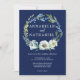 Elegant Navy Blue Floral Wreath Winter Wedding Invitation