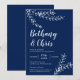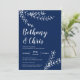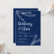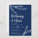 Elegant Navy Blue Foliage Minimalist Wedding Invitation
