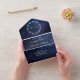Navy blue, galaxy, celestial, constellation, minimal, chic, elegant, rustic, modern folded marriage, QR code Wedding all in one invitations. Trifold, budget set. You can personalised it with your own details.