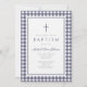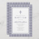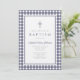 Elegant Navy Blue Gingham Boy Baptism Invitation