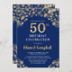 Elegant Navy Blue & Gold 50th Birthday Invitation