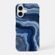 Elegant Navy Blue & Gold Abstract Liquid Marble Agate iPhone 16 case
