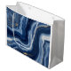 Elegant Navy Blue Gold Abstract Liquid Marble Large Gift Bag
