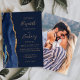 Elegant Navy Blue Gold Agate Photo Wedding Invitation