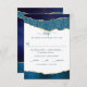 Elegant Navy Blue & Gold Agate Wedding RSVP Card