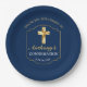 Elegant Navy Blue Gold Boys Confirmation Reception Paper Plate