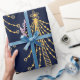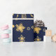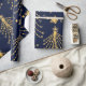 Elegant Navy Blue Gold Christmas Tree Star Pattern Wrapping Paper