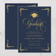 Elegant Navy Blue Gold College Graduation Announcement