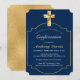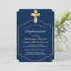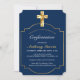 Elegant Navy Blue Gold Cross Boys Confirmation Invitation