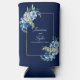 Elegant Navy Blue Gold Floral Custom Wedding Seltzer Can Cooler