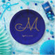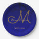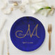 Elegant Navy Blue Gold Floral Monogram Paper Plate