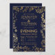 Elegant Navy Blue Gold Floral Reception Invitation