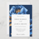 Elegant Navy Blue Gold Floral Wedding Invitation