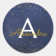 Elegant Navy Blue - Gold Foil Confetti Monogram Classic Round Sticker