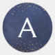 Elegant Navy Blue - Gold Foil Confetti Monogram Classic Round Sticker