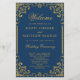Elegant Navy Blue Gold Frame Wedding Program Card