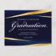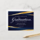 This elegant navy blue and gold graduation postcard features modern geometric lines above your formal text. The classy white script details your graduate school and class information. This upscale postcard can be used for a class of 2023 college party or university graduate announcement.