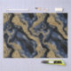 Elegant vivid navy blue foil and gold glitter liquid agate design