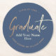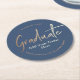 Elegant Navy Blue Gold Graduation Party Round Paper Coaster