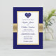 Elegant Navy Blue Gold Heart Nautical Wedding Invitation