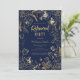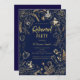 Elegant Navy Blue Gold Line Art Floral Retirement Invitation