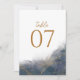 Guide your guests to their seats with this sophisticated wedding table number card. Featuring a luxurious navy blue marble background with shimmering gold accents, this design adds a touch of elegance to your wedding reception decor. The modern typography ensures clarity while maintaining a stylish look that perfectly complements formal and contemporary wedding themes. Personalise the numbers to fit your seating arrangement and create a cohesive, refined atmosphere for your special day.