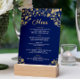 Add a touch of elegance to your special day with our Elegant Navy Blue and Gold Menu. Featuring golden confetti on a rich navy blue background, it's the perfect choice to set the tone for your celebration. Customise the details and make your event shine. Order yours today!