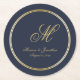 Elegant Navy Blue Gold Monogram Script Wedding Round Paper Coaster
