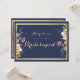 Elegant navy blue gold pink floral Bridesmaid Invitation