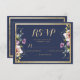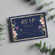Elegant navy blue gold pink floral RSVP