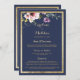 Elegant navy blue, gold, and pink floral Wedding Menu invitation. This botanic pink floral Wedding luxury party invitation is perfect for any classy and sophisticated glam girl. This design is ideal for a trendy and stylish party event. Customise this design with your own message and personalised information. All designs are printed.