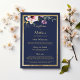 Elegant navy blue gold pink floral Wedding Menu