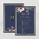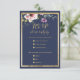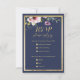Elegant navy blue gold pink floral wedding RSVP Card