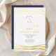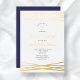 Personalised Elegant Navy Blue Gold Script Boy Baptism Foil Invitation.
