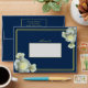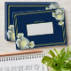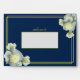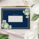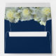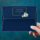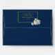 Elegant Navy Blue Gold Script Frame White Rose Envelope