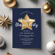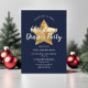 Personalised Elegant Navy Blue Gold Star Christmas Dinner Party Invitation.