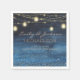 Elegant and chic navy blue with glittering gold string lights and lanterns personalised wedding event paper napkins. Text and fonts are customisable.