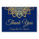 Elegant Navy Blue Thank You Wedding Card with an intricate faux gold Mandala flower design representing the blossoming of Purity within our Soul. Blue represents both the Sky and the Sea and is associated with open spaces, as well as loyalty, wisdom, and confidence. Perfect for a beautiful Summer happy ceremony. You can change the text from the Personalise Menu. Original Design by SunFreeStar