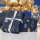 Wrap your gifts in style this holiday season with this elegant Christmas wrapping paper featuring a charming pattern of sketch-style Christmas trees and stars. The design showcases a beautiful combination of white and gold elements against a navy blue background, adding a sophisticated touch to your presents. Perfect for any festive occasion, this wrapping paper will make your gifts stand out under the tree. Ideal for those who love a blend of modern and classic holiday aesthetics.