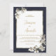 Elegant navy blue gold white orchid floral Wedding Invitation