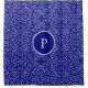 Elegant Navy Blue & Grey Damask Pattern Shower Curtain