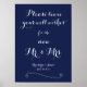 Elegant navy blue wedding guestbook sign print poster with white changeable text - you can add your text, Bride's and Groom's name and wedding date. Dimensions of the sign print (poster) are 20 inches by 28 inches (vertical).